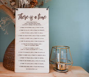 Engraved with the Ecclesiastes 3:1-8- There is a time Wooden banner