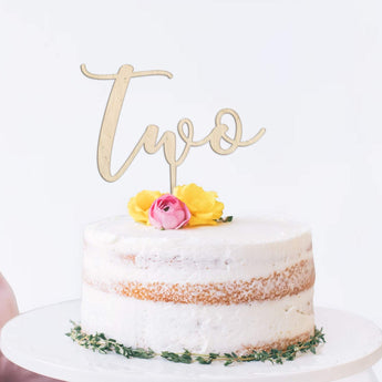 Celebrate your little ones second birthday, with this two script cake topper. Made from sustainable wood to create the perfect topper for a cake, simply wipe clean to use again and again.