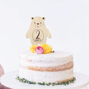 Add the perfect touch to your babies birthday cake with this bear wooden cake topper perfect to for a teddy bears picnic party theme.