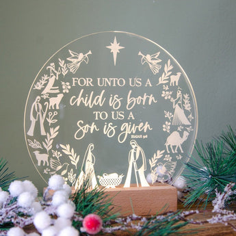 A child is born Isaiah 9:6 Christmas LED light - Birch and Tides, christmas night light, christmas story light design