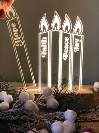 Made using a wooden led base and a slot in 5mm perspex engraved panel to create a beautiful and unique design, with a USB wire. Can be plugged into a wall adaptor or a laptop/ computer.