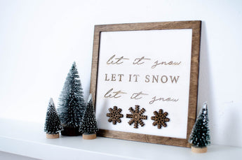 Decorate your home with stunning Christmas decor, perfect for getting you and your family in the festive spirit! This Let it snow sign, is a mix of hand painted and etched design, with a contrasting dark stain and white paint.
