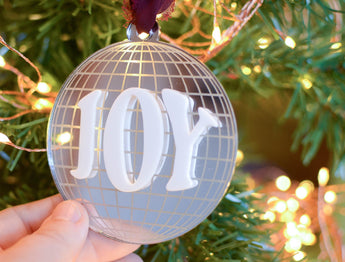 Joy sparkly disco ornament, modern sparkly christmas decorationJoy sparkly disco ornament, modern sparkly christmas decoration