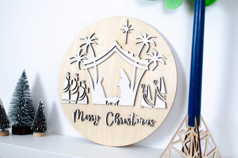 Decorate your home with our stunning nativity round, the perfect piece to hang on the wall or place on a shelf or mantle! This design is laser cut to give a clean and crisp edge and create the stunning outline effect.