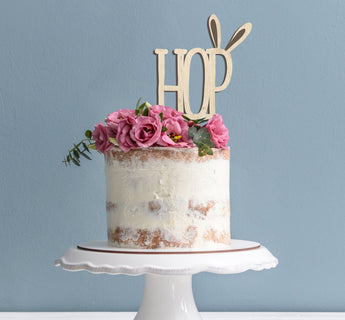 Celebrate easter this year with our eco friendly HOP bunny wooden easter cake topper perfect to use year after year, for a easy cake decoration and finishing. Simply place into the cake and wipe clean after use, it couldn't be easier!Sized to approx 8cm wide.Made from laser birch plywood, 3mm thick, to make this the perfect decoration for your big day.