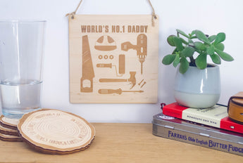 Give a unique and personalised gift for fathers day, with our wooden world's number 1 Dad tool sign. Perfect for hanging in a shed, office or garage. Can be engraved with a message at the bottom of the sign to make this truly unique to you and your dad.