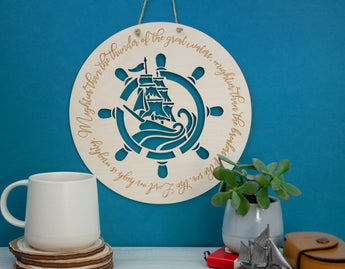 Display this stunning reminder of how mighty God is with a nautical ship themed wooden wall sign, created with intricate cutout details and engraved Bible verse this sign is a great reminder of the God we serve.