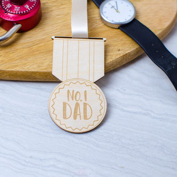 Let your dad know how special they are this father's day with our engraved wooden No. 1 Dad medal, complete with personalised text that you can write a little message to your dad (husband) perfect for gifting as a gift from the kids.