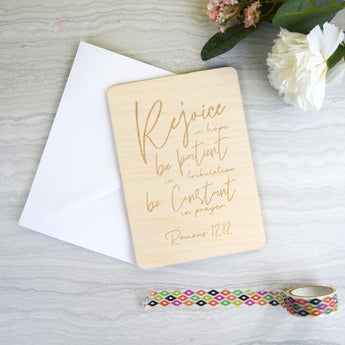 Send encouraging scriptures straight to friends and family with our engraved wooden scripture verse cards, perfect for displaying around the home!