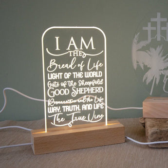 Made using a wooden led base and a slot in 5mm perspex engraved panel to create a beautiful and unique design, with a USB wire. Can be plugged into a wall adaptor or a laptop/ computer.