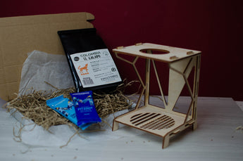 Find the perfect handmade gift for the coffee lover in your life. Gift box filled with delicious freshly roasted Coffee, V60 coffee stand and some chocolate. The perfect set for easy personalised gifting.