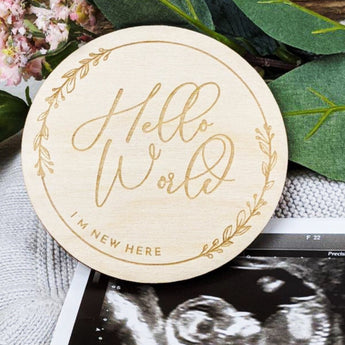 Create stunning memories with this wooden Birth announcement keepsake plaque engraved with the wording Hello, world. Perfect to add to a photo to create a beautiful newborn photography session or to give as a gift.