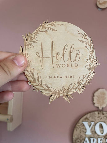 Create stunning memories with this wooden Birth announcement keepsake plaque engraved with the wording Hello, world. Perfect to add to a photo to create a beautiful newborn photography session or to give as a gift.