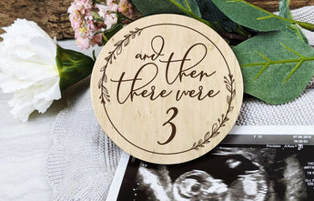 Create stunning memories with this wooden newborn announcement and then there were three baby announcement, perfect to add to a photo to create a beautiful first newborn photography session or to give as a gift. Can be personalised with any wording to make this a truly unique baby keepsake.These can be engraved with any wording!Dimensions : 3inchs x 3 inchs