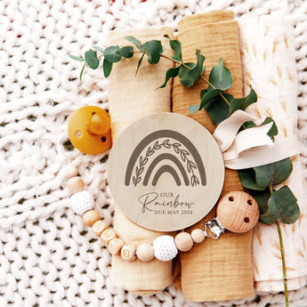 Celebrate your rainbow with our engraved milestone disc perfect for welcoming your little one into the world.