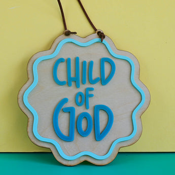 Add this fun colour pop to any room, made using birch plywood and bold acrylic to create a instant colour and truth pop into any space! Colour way: Baby Blue + Blue With the Child of God sized to 145mm