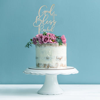 Easily decorate your cake and make it stand out from the crowd with this God bless personalised cake topper, perfect for adding to the top of any cake.