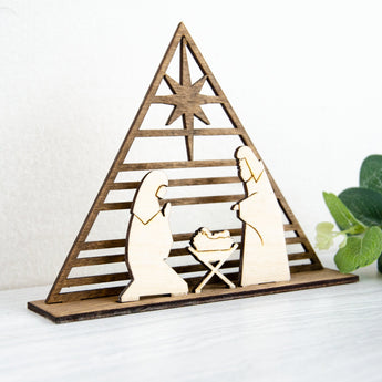 Striped Wooden nativity set, perfect to display in your home. With slot in stable and characters, this set is beautifully made to display the real meaning for the season.