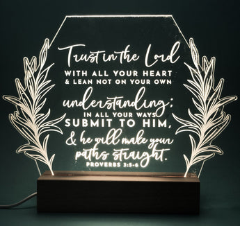 Be still and Know night light - Birch and Tides. Engraved light design with Psalm 46:10 glowing.