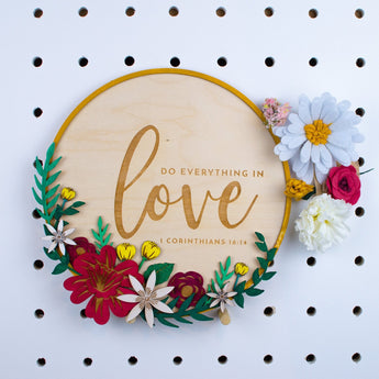 Fill your home with encouraging and uplifting scripture with our beautifully engraved do everything in love wooden wall art, perfect for hanging on a wall or placing on a shelf.