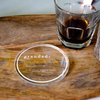 Give a unique and personalised gift for fathers day, with our engraved definition of grandad 5mm acrylic drink coaster, the perfect gift for a unique fathers day present.