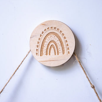 Add our beautiful wooden wall hooks to your home, for quick and easy hanging complete for a beautiful finish and modern touch. Add a decorative touch to your walls. Supplied with a 3M self adhesive strip for quick and easy applicationThis pack includes 1 rainbow hook design.Measurements:-Approximately 40mmAll of our wooden hooks are made from 3mm FSC certified birch plywood and carefully sanded to remove any burn marks. Our hooks are made from two layers, for easy hooking.Decoration only: Items are not to be handled by children, they are for eyes only. Do not hang items above cots or beds or within a child's reach.As this is a natural wood product please note the wood grain may vary from that shown in the picture.
