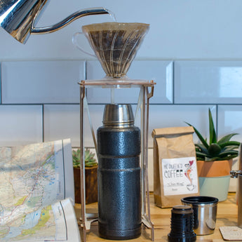 Sized to fit a standard coffee flask, this stand is perfect for all coffee drinkers, you can even engrave a personalised message or name on the stop of the stand!