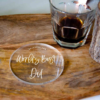 Give a unique and personalised gift for fathers day, with our engraved World's best dad 5mm acrylic drink coaster, the perfect gift for a unique fathers day present.