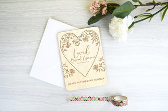 Give a stunning unique card with this wooden engraved card with a stunning; Loyed beyond measure, Happy Mothering Sunday with the middle heart being able to be popped out and hung. The perfect card to give for mothers day!