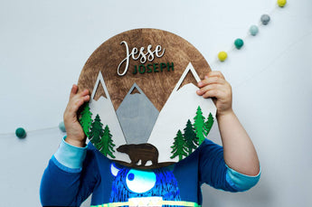 Personalise your little one's nursery with a custom mountain name sign, perfect for the adventure mountain themed nursery. Name can be customised to match your little ones, and we can match colours to suit perfectly to your nursery or room!Made out of 3mm Birch Plywood engraved with all the details you need to include.Measures 10x10inchsHow to order:Included all the details you would like in the note to seller section when you order.