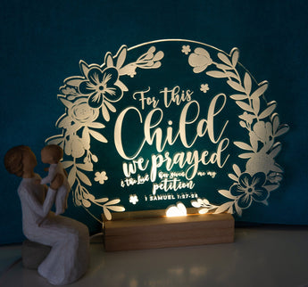 Made using a wooden led base and a slot in 5mm perspex engraved panel to create a beautiful and unique design, with a USB wire. Can be plugged into a wall adaptor or a laptop/ computer.