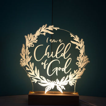 Made using a wooden led base and a slot in 5mm perspex engraved panel to create a beautiful and unique design, with a USB wire. Can be plugged into a wall adaptor or a laptop/ computer.