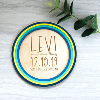 Navy and blue Rainbow Newborn birth detail plaqueNavy and blue Rainbow Newborn birth detail plaqueNavy and blue Rainbow Newborn birth detail plaque