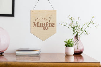 Add some fun designs to your child room with our you are magic wooden banners, perfect to decorate your home! This sign is made using sustainably sourced birch plywood.