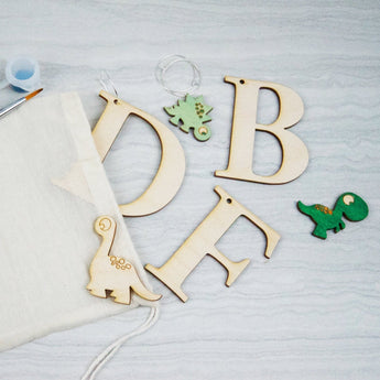 Decorate your own dinosaur and wooden initial to create a beautiful keyring unique to you! Perfect to use with kids, these make a perfect gift idea for Birthdays whether its party favours, painting parties, or just any gift in general!