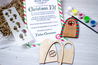 Celebrate the arrival of the Christmas elf, with a paint your own wooden elf door, perfect to stick on the wall and start creating that special magic at the beginning of the season. Complete with a letter from Father Christmas himself, as well as tiny elf footprints stencil that the adults can use throughout the month. (footprints are hidden under the package stuffing, to keep the magic alive!).