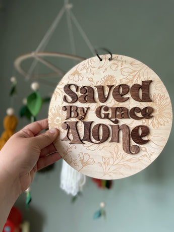 Decorate your home with our Saved by Grace alone wooden signs, perfect for adding to your wall.