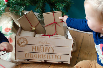 Our Christmas eve boxes can be personalised with your little ones name and a special seal from Santa himself (optional if preferred). Simply enter the name you would like engraved in the engraving box.