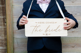 Add a unique detail to your big day with our wooden engraved signs, perfect for your page boy/ ringer bearer to wear down the aisle.