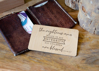 Add scripture straight into your wallet with our wooden engraved wallet cards. Engraved on 1mm thick birch plywood, our card can be added to your pocket without being bulky.