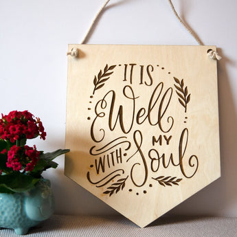 'It is well with my soul' engraved hymn wooden banner, perfect to decorate your home! You can hang this sign anywhere in your home to remind yourself or others of the amazing truth this hymn speaks.